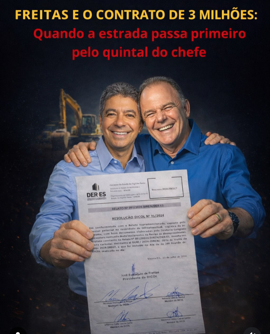 A denúncia apresentada pelo deputado Lucas Polese joga luz sobre um episódio que, se não fosse trágico, seria cômico. O diretor-presidente do DER-ES, José Eustáquio de Freitas, teria sido beneficiado com cerca de R$ 3,2 milhões em indenização por desapropriação de área atingida por uma obra do próprio órgão que ele dirige. Sim, você leu certo: o chefe da caneta também estaria do outro lado do balcão.