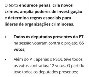 Relatado pelo deputado Guilherme Derrite (Progressistas-SP), o projeto cria a figura penal de “facção criminosa”, endurece penas e amplia instrumentos de investigação e punição a organizações envolvidas em crimes violentos, domínio territorial e lavagem de dinheiro.